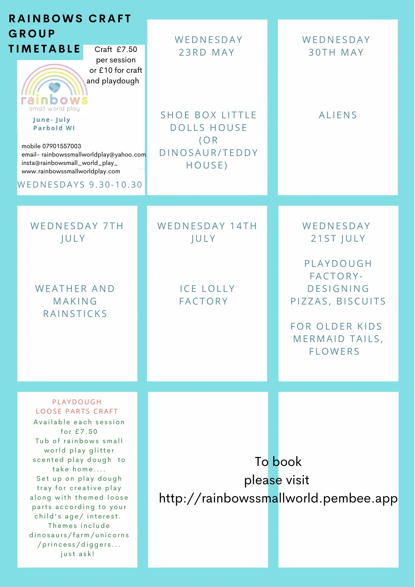 Every week you can choose to book a playdough session. You will be given a large tub of glitter rainbow play dough which you can take home at the end of the session.