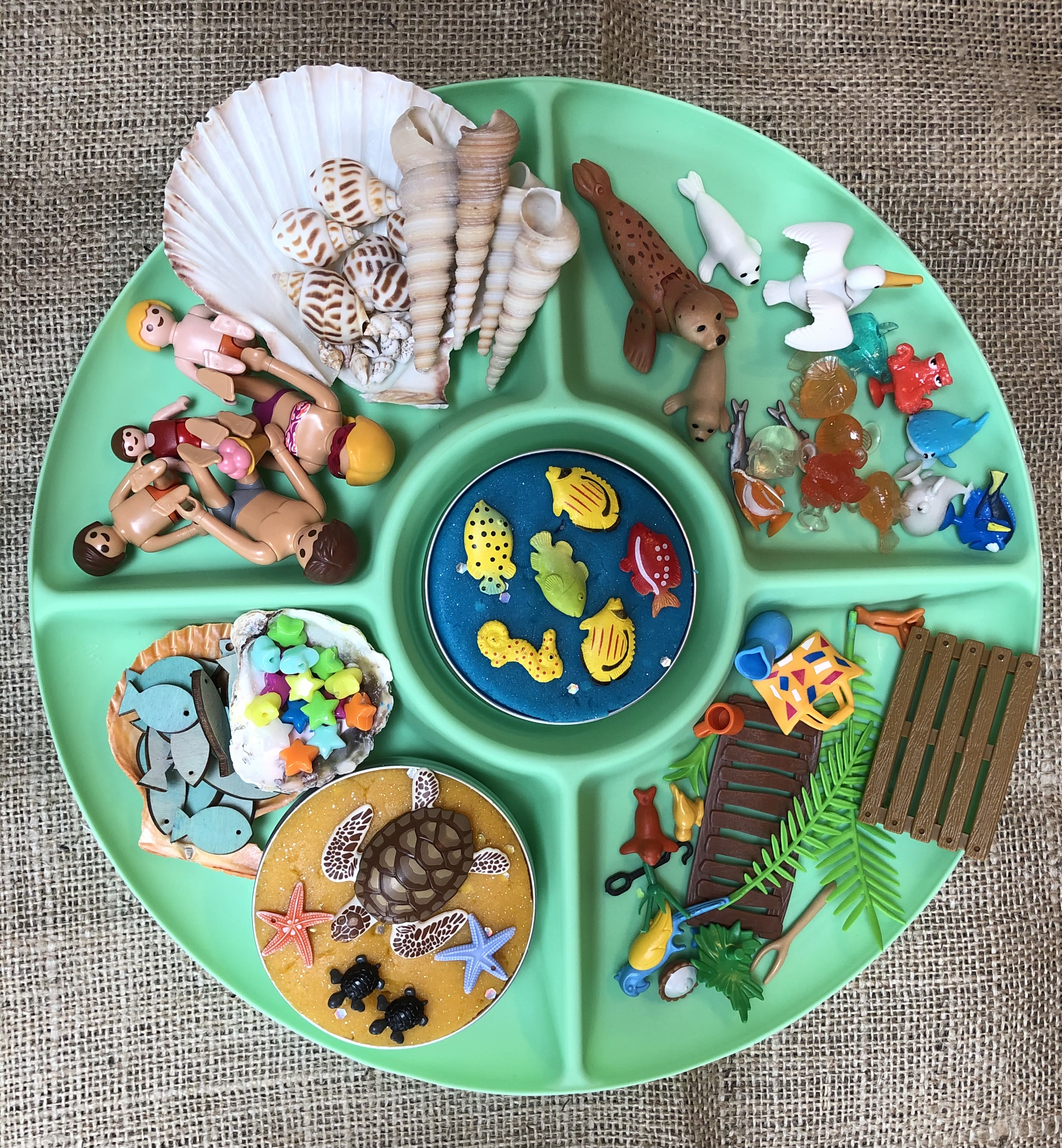 Each session will begin with setting up a playdough tinker tray for your child and letting them play with my drawers and baskets full of interesting themed loose parts. This type of open ended creative play with loose parts is widespread in early years settings, but hard to re create at home- so let me do the hard work for you! You get to take the playdough tub home with you at the end 😀 My playdough is fully safety tested, CE marked and contains natural ingredie, including biodegradable glitter.