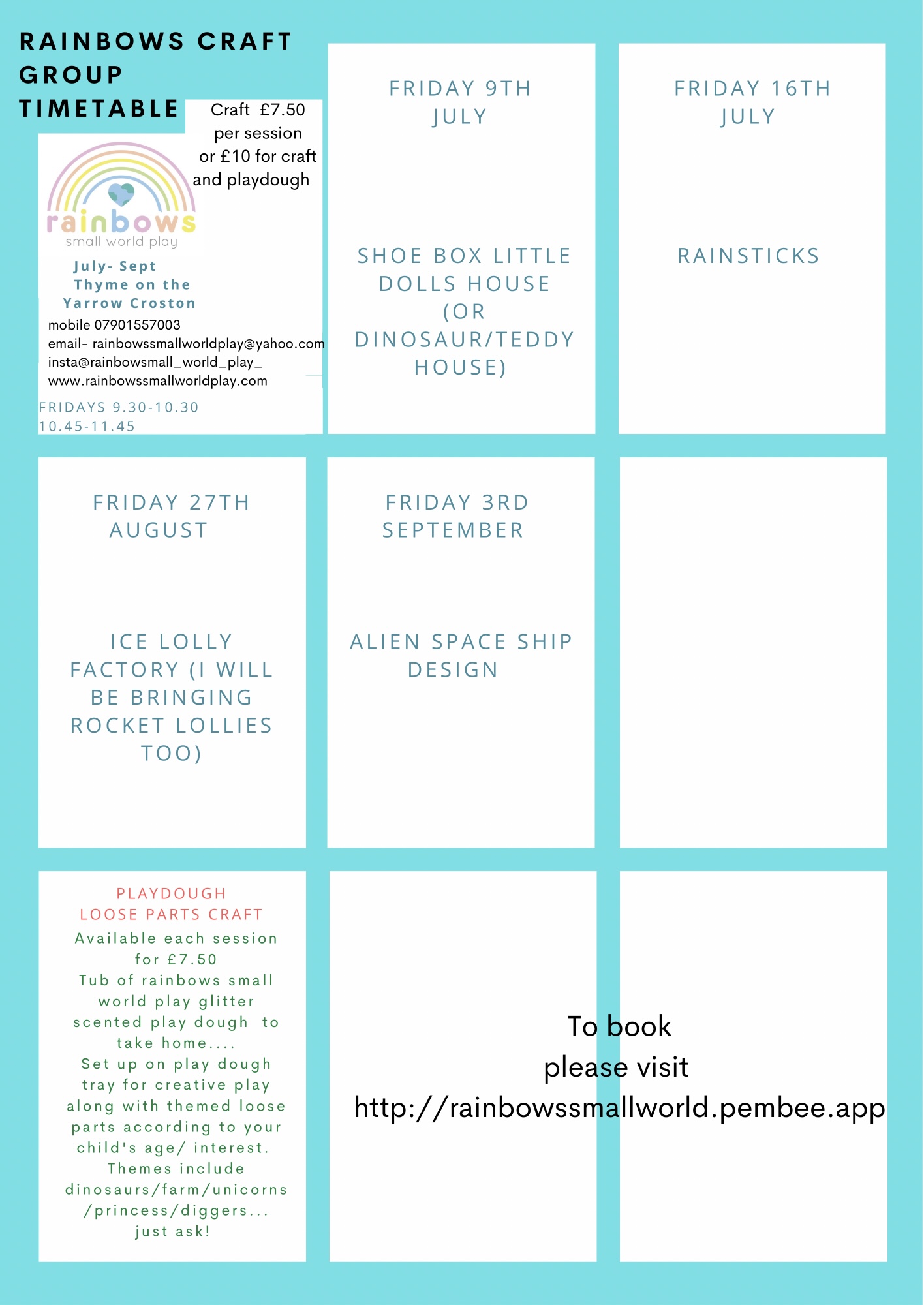 I will be running creative activities for the little ones attending to keep them happy and occupied whilst you have a well earned cuppa!